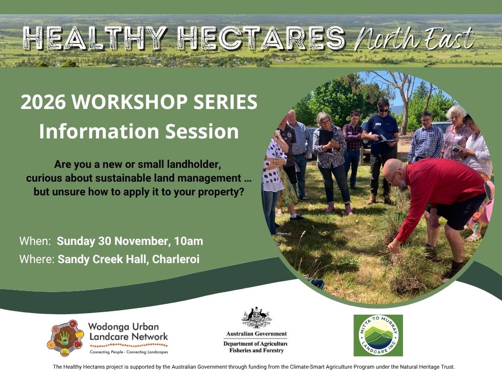 Are you a new or small landholder curious about sustainable land management … but unsure how to apply it to your property? Then Healthy Hectares may be for you! Healthy Hectares North East is a 6-session workshop series, commencing in February 2026, where you will learn how to manage your land sustainably. This information session […]